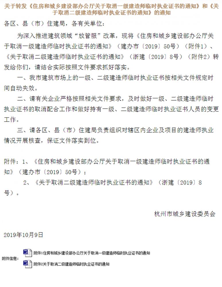關(guān)于轉(zhuǎn)發(fā)《住房和城鄉(xiāng)建設(shè)部辦公廳關(guān)于取消一級(jí)建造師臨時(shí)執(zhí)業(yè)證書(shū)的通知》和《關(guān)于取消二級(jí)建造師臨時(shí)執(zhí)業(yè)證書(shū)的通知》的通知