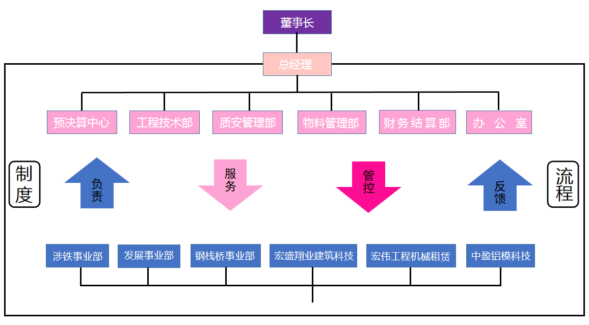 集團(tuán)現(xiàn)設(shè)置涉鐵事業(yè)部、發(fā)展事業(yè)部、鋼棧橋事業(yè)部三大工程事業(yè)部及辦公室、財(cái)務(wù)結(jié)算部、工程部、技術(shù)部、質(zhì)安管理部、物料管理部、預(yù)決算審計(jì)部等七大職能部室,主要控股子公司有:杭州宏偉市政景觀工程有限公司、寧波錢(qián)鴻翔業(yè)建筑科技有限公司、杭州中盈鋁模有限公司、杭州蕭山宏偉工程機(jī)械租賃有限公司、杭州竤景投資管理有限公司、杭州牧人咨詢(xún)管理有限公司。
